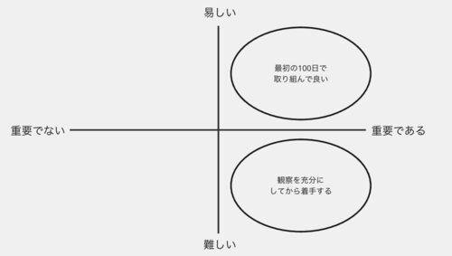 昨日、こういうエントリを書いた。 daiksy.hatenablog.jp マネージャーとして入って最初の100日は観察を主軸にするのが良い。その後仕事をしはじめても、組織のカルチャーが体に馴染んで課題が腹落ちしはじめるまでは半年かかる。という内容だ。 このエント…